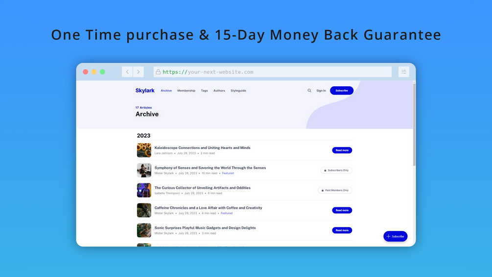We are introducing Skylark, a carefully crafted Ghost theme that blends classic aesthetics with a modern touch. Whether your passion lies in building a community, business, design, lifestyle, or any other discipline, this theme caters to everyone looking to share their captivating stories.
